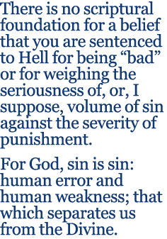 My conviction is Hell is a place where God Is Not. Hell suggests a separation from the Divine. A punishment? No, more a choice: to dwell in the presence of God, or not to. An omnipresent God, by syllogistic argument, must be everywhere in existence at all times. If Hell is indeed a place that exists within existence, then God, therefore, must be there. However, in my view, theology makes the argument that if God be God, He can make up His own damned rules.